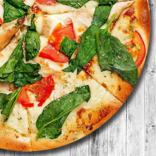 BBQ Sauce Base, Onions, green peppers, roast chicken and smoky bacon.