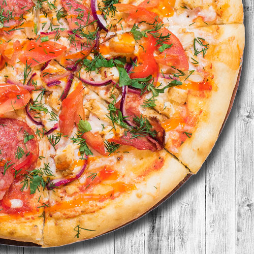 Fresh tomatoes, mushrooms, mixed peppers, onion, green chilli & sweetcorn.