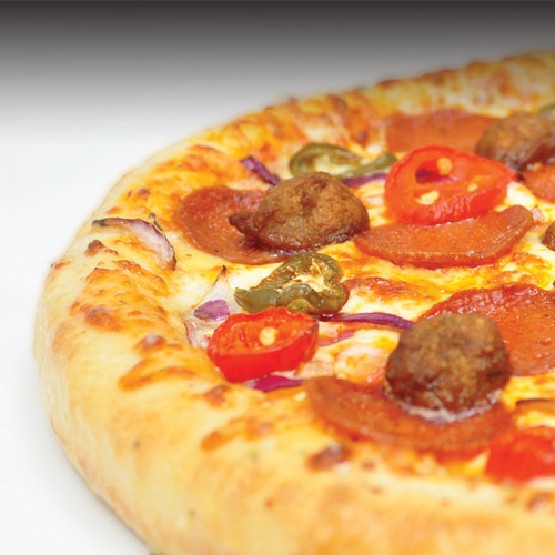 Spicy beef, turkey ham, chicken tikka, pepperoni