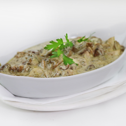 Button mushroom sauteed in garlic sauce and herbs, served hot