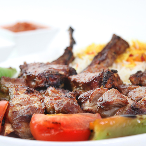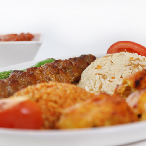 For 2 People To Share. Persian Platter.Koubideh (1 Skewer Of Mince Meat), Jojeh (1 Skewer Of Chicken Shish), Chenjeh (1 Skewer Of Lamb Shish).(served With Hummus, Jajik, Rice, Couscous, Bowl Of Salad, Bread, Garlic & Chilli Sauce).