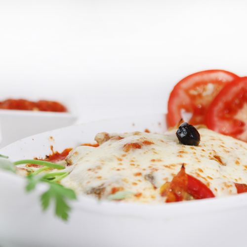 Made with lean ground lamb, creamy ricotta, topped with mozzarella & homemade tomato sauce.